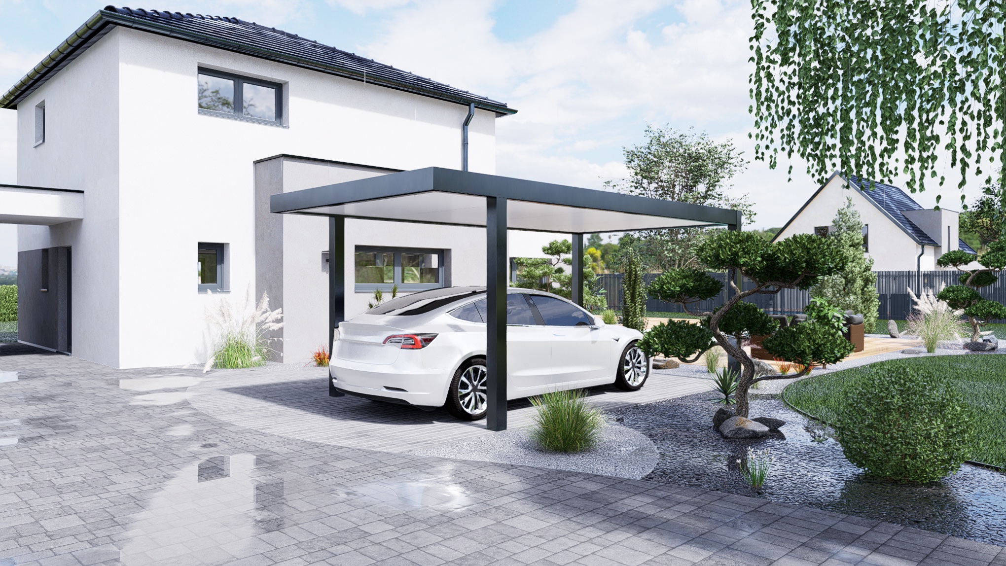 Le Carport Solaire est un abri de voiture qui permet d'allier protection automobile et autoconsommation énergétique.