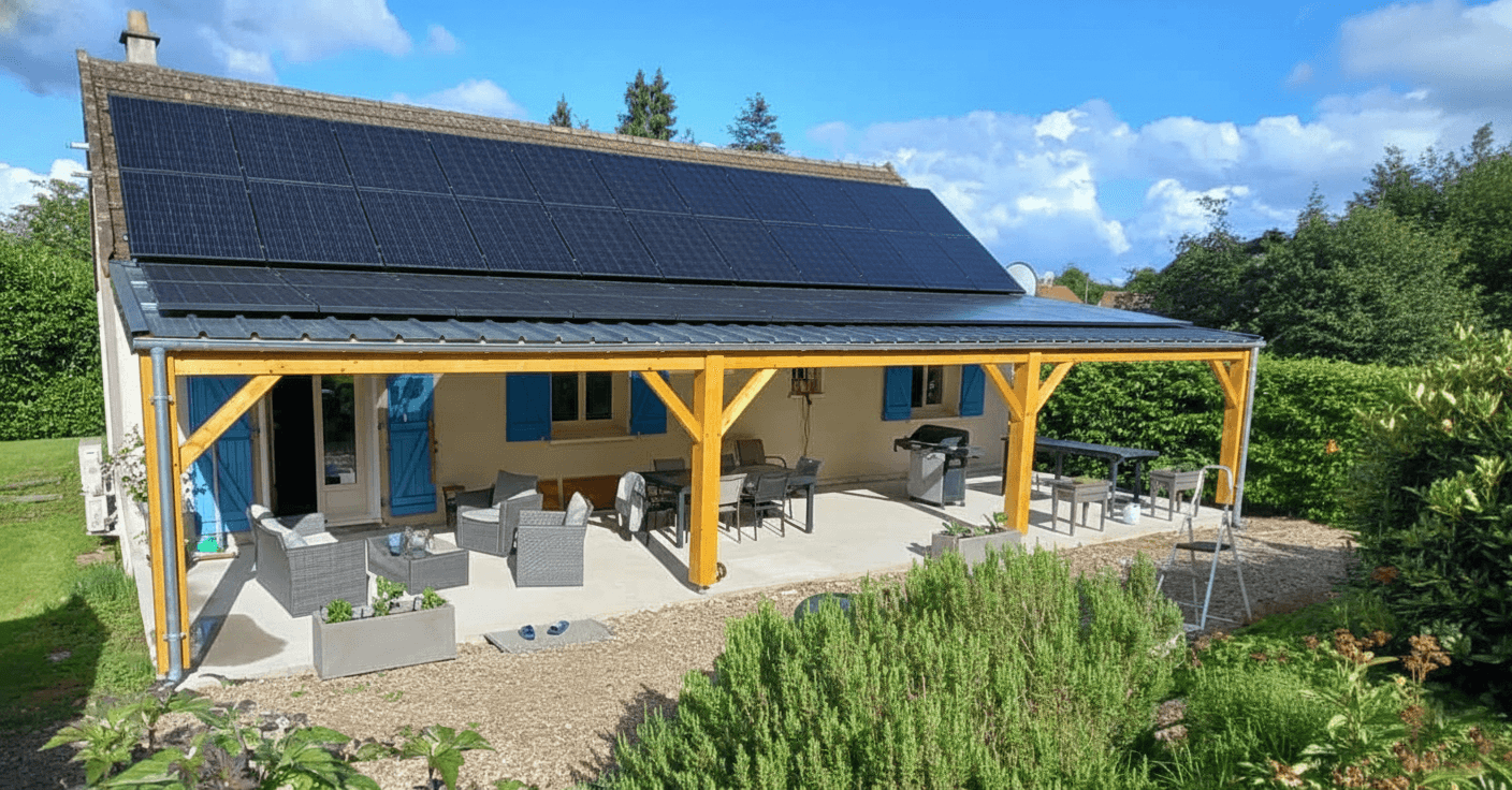 Disponible en plusieurs puissances (3, 6 ou 9 kWc), il intègre des panneaux solaires haut rendement montés sur une structure métallique laquée noir.
